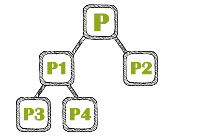 Le 1er mois, nous avons vu que vous obteniez 1 part. Nous l'appellerons la Part P. Pour le moment, cette part ne vaut rien, elle est à 0%. Une part se place forcément sous une autre ! Aussi, comme il s'agit de votre toute première part, elle ira se positionner sous l'une des parts de votre parrain ou marraine.